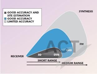 雷达传感器的目标是获得长探测距离、大空间覆盖范围(以仰角计算)和出色的距离和角度分辨率(与信号的瞬时带宽相关)。为了实现无源雷达的性能最大化,考虑了以下信号源: 1. FM band FM频段 2. DVB-T band DVB-T频段 3. DAB band DAB频段