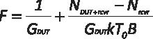 这里: Th为噪声源“热”状态等效噪声温度,即此时噪声信号源输出的功率密度为 Nh=kTh/Hz;同样 Tc代表噪声源在“冷”状态下的等效噪声温度(一般为室温); T0为标准噪声温度 T0=290k。 ENR=(Th-Tc)/T0;一般由噪声源供应商给出 Y=N2/N1为;以噪声信号源的“冷”“热”两个等效温度下激励下,被测件的输出噪声功率比,一般由接收机测得。 ②增益法(冷源法),如果已经知道被测件的增益,在被测件的输入端接上负载,如果知道环境温度,那么被测件的输入噪声功率为 kTcB。被测件输出为 N1。