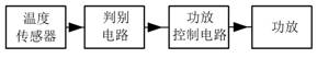 图12 收发开关驱动器驱动信号波形 3.5 功放保护电路保护电路的作用是在由于内外因引起放大器工作状态异常时,切断电源,保护放大管免于烧毁。另外还防止放大器异常开机,烧毁其它电路,比如接收机。 保护电路可以使用传感器、微处理器和控制程序实现,但这种方法的反应速度较慢。我们采用传感器、运算放大器和逻辑电路实现,当出现异常时,可以非常迅速地启动保护电路,有效保护了放大管。 功率放大器电路选用增强型FET管,需要在栅极施加高于门限电压的栅压后,放大管才能工作。所以,利用控制栅压的方法,控制放大器的工作与否。保护电路启动后,切断栅压,也就关闭功放。 3.5.1 过温保护电路当功放的工作状态异常(比如散热不良),使功放温度不断上升,达到设定最高工作温度时,启动保护电路。过温保护电路有温度传感器器、判别电路和功放控制电路构成,见图13。温度传感器置于末级放大管附近,便于及时感知主热源的温度,迅速控制。判别电路是一个比较器,当传感器输出电压(对应温度)高于设定的参考电压时,比较器翻转,输出反极性电压(低电平),功放控制电路动作,切断功放电源。