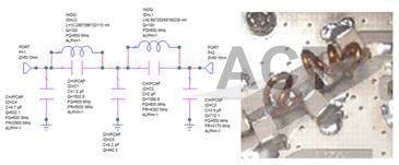 图8 . 高功率TR开关 开关的高功率部分是TR开关组件,见图9,使用薄膜电路和微组装工艺制成。开关管芯片直接安装在薄膜电路上,用金带引线与电路互连。实测TR开关组件可以在300W射频功率下正常工作。电路的发射通道插损小于0.5dB(包括谐波滤波器),接收通道插损典型值小于0.5dB,收发隔离优于70dB。