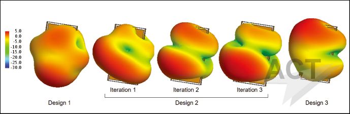 图9、每个设计在1.8GHz的总辐射功率 设计1展示了CMA设计的最佳性能,演示了CMA如何运用提高设计2的性能。进一步地,设计3阐述了在窄频段范围内一个有良好CMA模式性能的方案是如何实现一个窄带特性设计的。最终,在图9中,总的辐射方向图通过权重模式方向图进行计算。 总结 CMA提供了全新的方法来解决设计上的挑战:对结构的固有的谐振行为的深入分析有助于创新的设计方法。本文简单地介绍了构成部分CMA分析的概念和参数。然后通过一个实例更加详细地介绍了一个典型工作的三个主要流程。本文通过智能手机天线的不同设计方案展示了CMA方法作为一种全新的设计思路的技术优势。 (翻译:杨晨晨 王晓峰) 参考文献 1. D. Ludick et al., "Characteristic Mode Analysis of Electromagnetic Structures," EuMW 2015. 2. Altair Engineering Inc., "FEKO Suite 14.0," Troy, MI, www.altairhyperworks.com/product/FEKO. 3. P. Futter et al., "Simulation Approach for MIMO Antenna Diversity Strategies," EDICON China 2015. 4. R. Martens, et al., "Inductive and Capacitive Excitation of the Characteristic Modes of Small Terminals," Loughborough Antennas & Propagation Conference 2011. 5. Optenni Lab version 3.3, Optenni Ltd., Espoo, Finland, www.optenni.com